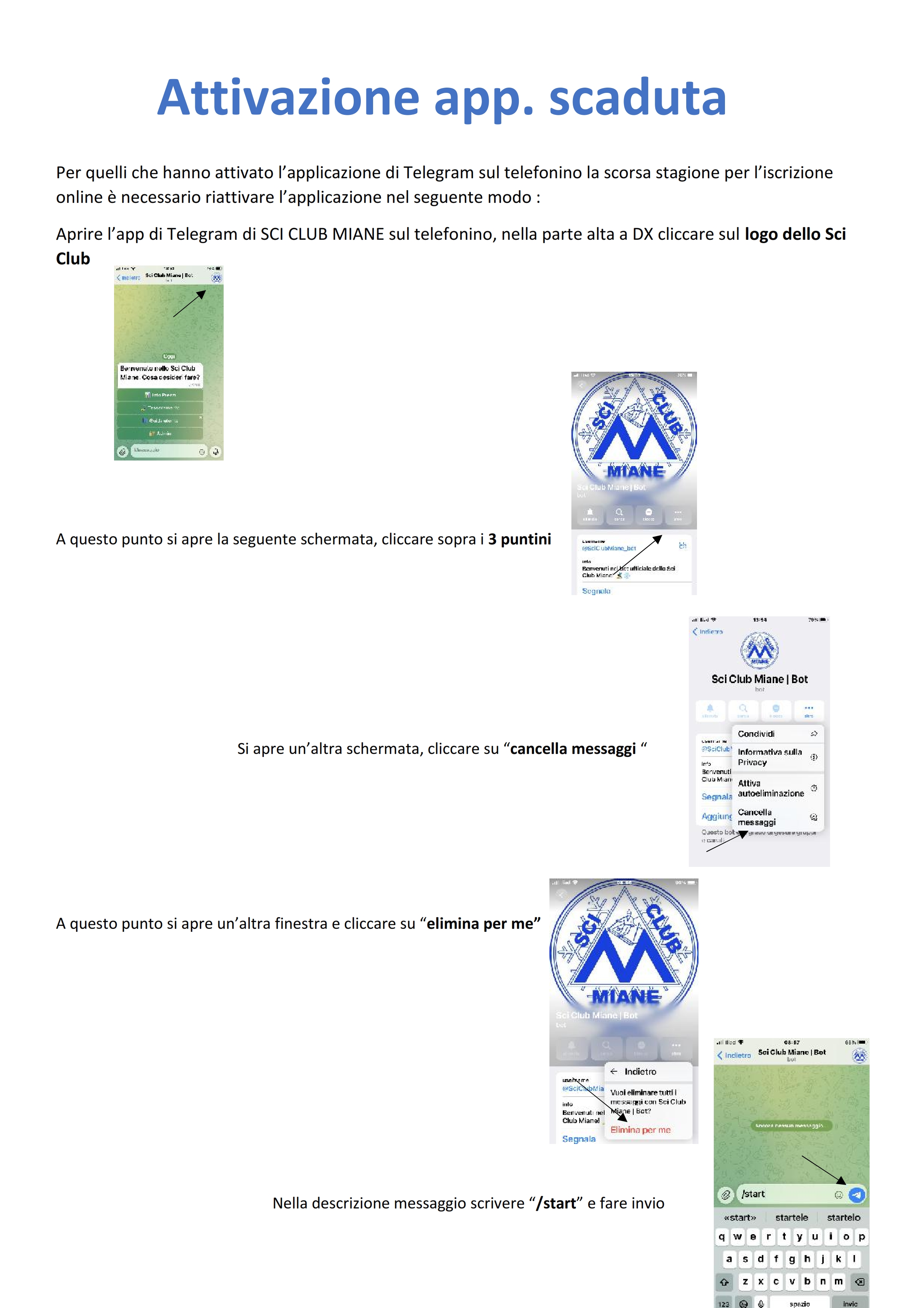 IMPORTANTE : per quelli che hanno attivato l'applicazione di Telegram sul telefonino la scorsa stagione per l'iscrizione online è necessario riattivare l'applicazione seguendo le istruzioni sotto allegate.